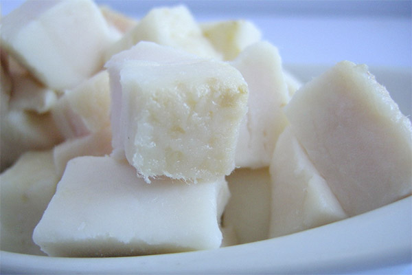Pork fat is a product of processing fat. It is characterized by a number of useful qualities, provides the body with the necessary elements. It takes 10-12 hours to obtain such lard. First, the lard is separated from the carcass, washed and soaked in water with the addition of salt. Then the chopped pieces of lard are boiled over medium heat until all the liquid evaporates.