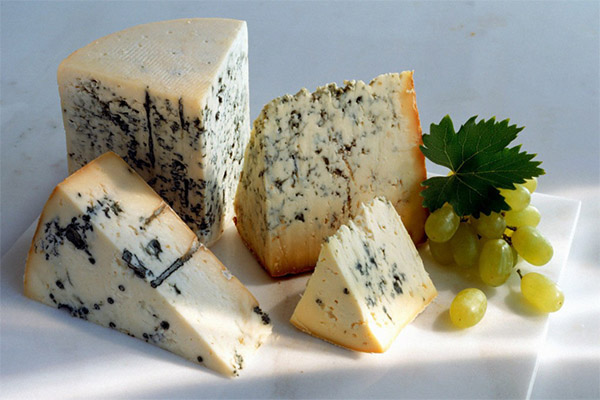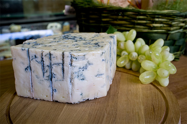 - Blue mold. This noble cheese is remembered for the fact that on its slice is easy to see a large number of blue-green inclusions, as well as a peculiar veins. The most famous "blue" varieties are Roquefort and Blay de Cosses. In the preparation of milk first fermented, and then spread out in special molds to whey, and then salted. Next comes the process of introducing the strain of fungus: special long metal needles are stuck into the cheese. They are needed for faster spreading and growth of the mold. After all this, the cheese is transferred to a room that is well ventilated. There it will mature for a long time.