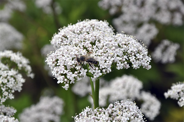 Valeriana medicinal refers to perennial herbaceous plants of the Valerian family. The rhizome of this representative of the botanical world is vertical, from 2 to 10 cm in length, numerous light brown roots depart from it. The stem of the plant is covered with grooves, branched upwards. Radical leaves have long petioles. The flowers are small and vary in color from white to pinkish-purple. They are placed on the tops of the stem as well as on the side branches.