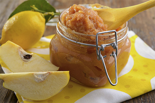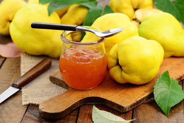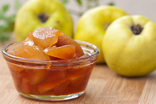 Quince jam along with raspberry jam is used as an antipyretic, its diuretic effect is useful for high blood pressure and cystitis. Fiber acts as a natural abrasive, speeding up the cleansing of the body of toxins.