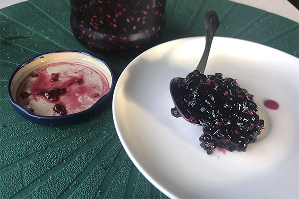 A great combination not only in the color ratio, but also in the sphere of benefits for the body. This is a real vitamin pill for weak immunity, lingering coughs and frequent colds. The ratio of berries and sugar is 1:1. Elderberries are crushed and rubbed through a sieve, blackberries can be added as whole berries. The secret of preparation is to boil the mixture without sugar. It is added 10 minutes before it is ready. The whole process takes 30-35 minutes.
