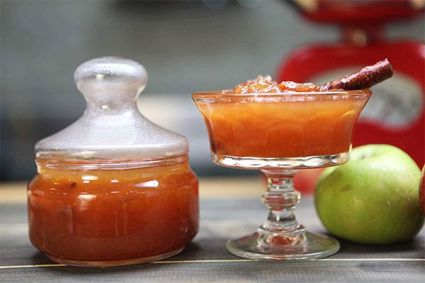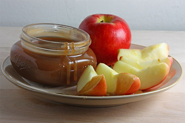 The high percentage of fiber in the dessert binds and removes toxins and impurities, supports and accelerates the regeneration process, inhibiting age-related changes, improving the appearance of hair, maintaining bone density and the integrity of dental enamel. In weight correction programs, apple treats will speed up the metabolism and the process of breaking down fat, diversify the palette of flavors and make up for the lack of micronutrients. It is prepared on fructose, of sour-sweet varieties with minimum cooking time. The acceptable dosage is 2-3 teaspoons per day as a dessert.