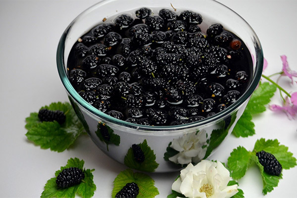The process is simple, but labor-intensive. In small jars, the mulberries are spread out, leaving a little empty space up to the neck, put the container on a water bath. When the mass settles, add more portions of fresh berries. In total it will take 60 minutes. The last fruits are added 20 minutes before they are ready. To preserve the product requires tight seal and storage in a dark cool place.