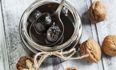 To obtain jam according to this recipe, you should prepare 1.2 kilograms of sugar, 1.5 cups of water, 200 g of peeled walnuts and a kilo of green tomatoes. For such a treat, you can choose small tomatoes, which are convenient to cut into slices of small thickness. The peeled kernels of nuts should be fried in a pan without oil for five minutes. After that, the nuts should be chopped. To do this, you can use a blender or a coffee grinder. Next, it is necessary to prepare a thick syrup from the specified amount of water and granulated sugar. Tomatoes with nuts should be placed in a saucepan and put on the stove. Pour the syrup over the vegetables with nuts, cover with gauze in several layers or an ordinary kitchen towel and leave for 18-20 hours at room temperature. After that, you need to pour the syrup, boil it and add it to the vegetables again. Now all that's left is to roll up the delicious treat in jars.