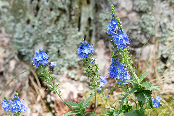 Veronica blooms with bluish or pale purple flowers. They have a four-parted corolla and calyx. The flowers are gathered in tassels, which are located in the axils of the leaves. The plant blooms from June until the end of September. Veronica is also known for its fruits. They are capsules which are oval in shape and contain a large number of seeds. The ripening period is from July to October. The plant is propagated by seed and vegetatively.