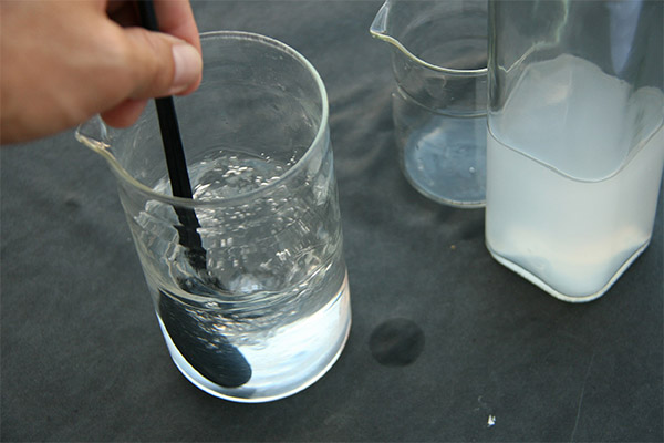 - Dissolve soda should be strictly in hot water (90 degrees Celsius), as the higher temperature quenches the powder and makes it suitable for ingestion. After mixing, you can wait for the liquid to cool or dilute it with cold water.