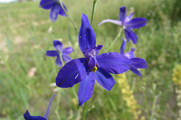 The reticulate larkspur is a thermophilic species. It is found in the south and east of all of Russia. A distinctive feature of the composition of this variety is the high content of curare-like myorelaxants. These substances relax muscle tone and spasms. Medicinal forms with the herb of this species help with cramps, diseases of the digestive organs. The reticulate larkspur inhabits vast areas in the Altai Territory, but the main raw material for the production of medicines is collected in the special climatic zone of the Dzungarian Alatau. Only the aboveground part is suitable for making medicines, but more often the inflorescences are used.